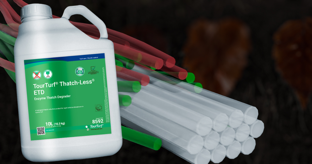 The decompositions will work even better with enough available oxygen. To reduce thatch in turf, optimise your aerification program and combine Thatch-Less® ETD (Active laccase and cellulase) and Thatch-Less® FTD (laccase and cellulase producing fungi) applications with TourTurf® OXT Oxygen Turf for readily available chemically bound oxygen, increasing the activity of beneficial soil microbes.