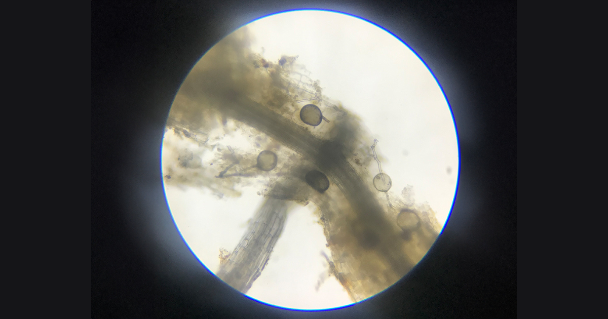 These soil aggregates help reduce soil erosion. Glomalin is part of soil organic matter and can help retain carbon and nitrogen in the soil.